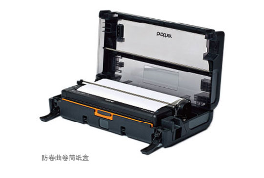 除固定尺寸的單頁(yè)紙外,還可打印卷筒紙。備有打印機(jī)上安裝的卷筒紙架以及可與打印機(jī)一起搬運(yùn)、能直接打印的卷筒紙打印機(jī)盒。